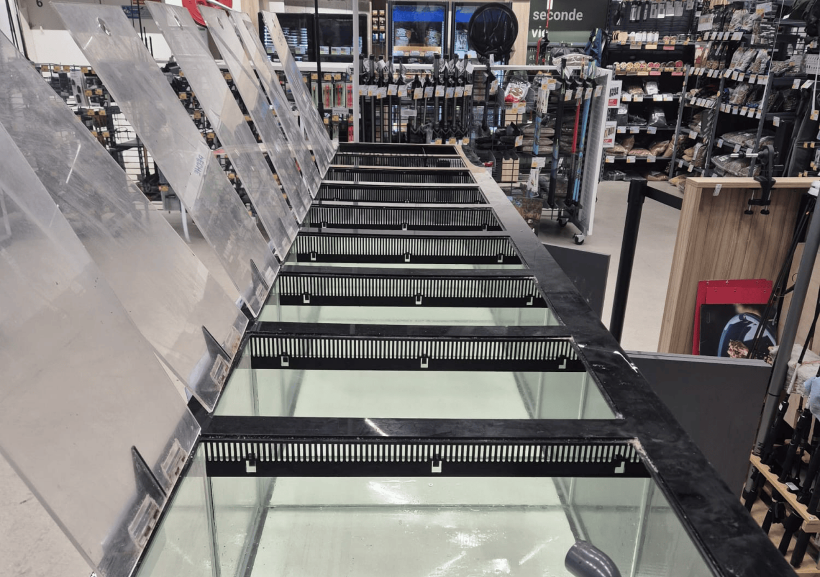 Nous avons récemment réalisé la remise en route complète d’un aquarium pour appâts de pêche en mer au sein d’un magasin Décathlon à Bidart. Ce type d’intervention est essentiel pour garantir de bonnes conditions de conservation des appâts et assurer le bon fonctionnement de l’installation sur le long terme.